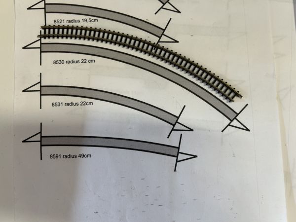 8530 Gebogenes Gleis r220mm 45 Grad Kreis = 8 St.