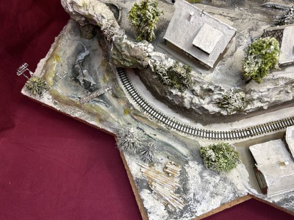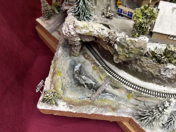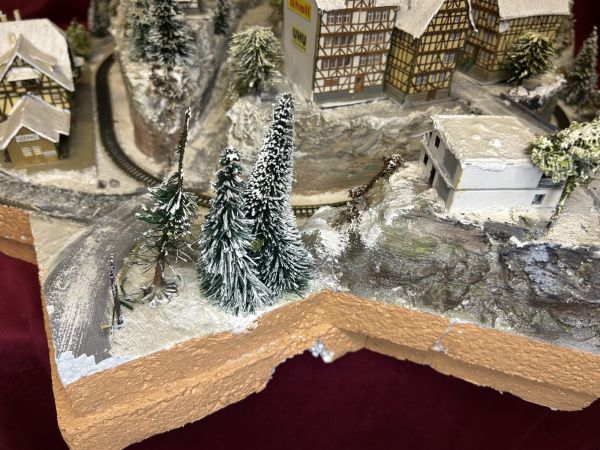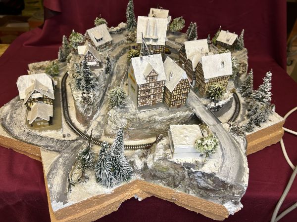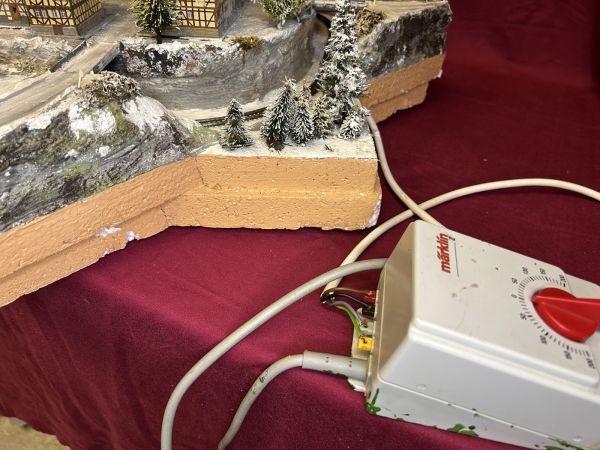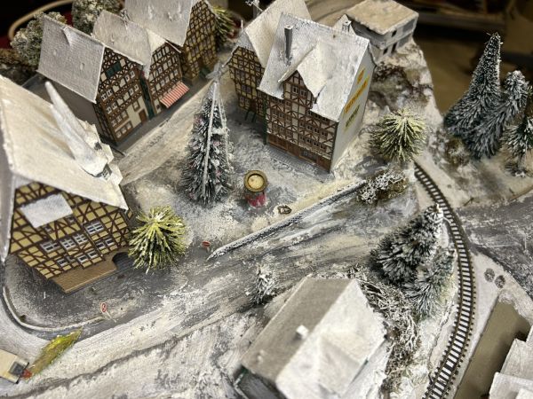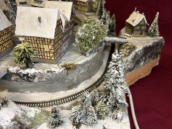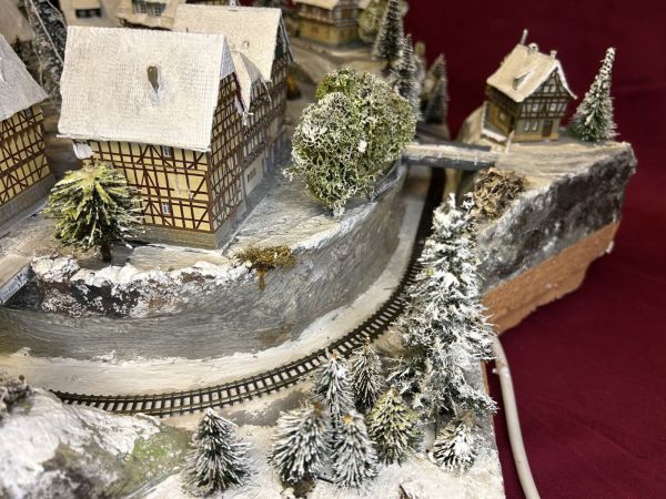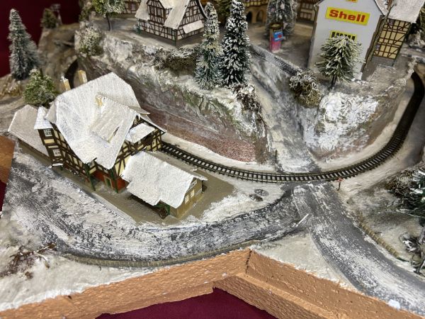 Diese Anlage ist aktuell noch in der Endprüfung. Die grundsätzliche technische Prüfung ist bestanden (Häuser beleuchtet, Zug fährt).
