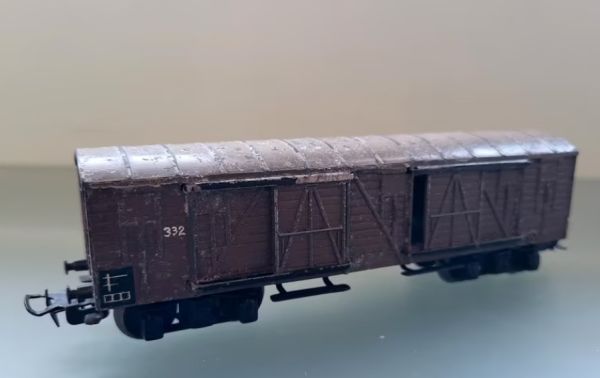 Guss-Gehäuse, 4 Schiebetüren zum Öffnen, Guss-Drehgestelle, Aufschrift handbemalt 332