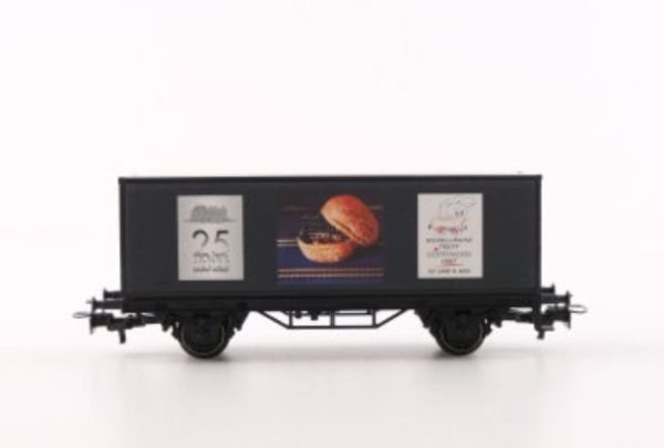 Containerwagen, Kunststoff-Gehäuse, Bildbedruckung, Aufschrift Modellbahntreff Göppingen 1997