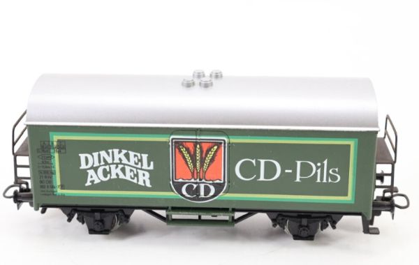 Ichqrs 377 der DB, Kunststoff-Gehäuse, Aufschrift DINKELACKER CD-Pils Nr. 082 0 684-7