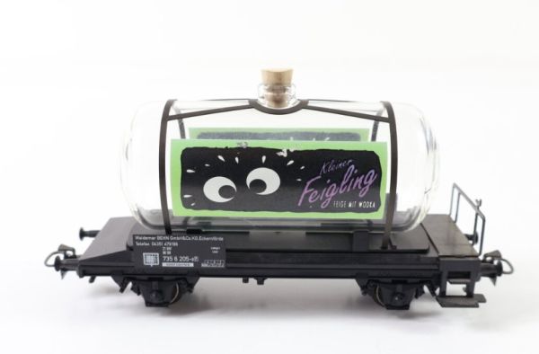 Wagen mit Kessel aus Glas, Aufschrift kleiner Feigling, Nr. 735 6 205-8