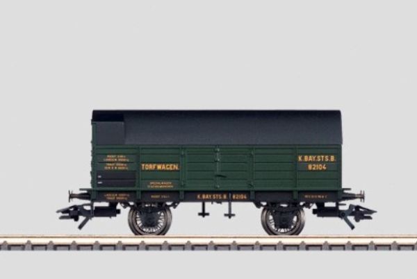 Spezialwagen der Königlich Bayerischen Staatsbahn (K.Bay.Sts.B.). Mittelbordwagen mit erhöhten Stirnwänden und abgedecktem Laderaum. Einsatz als Zusatztender.