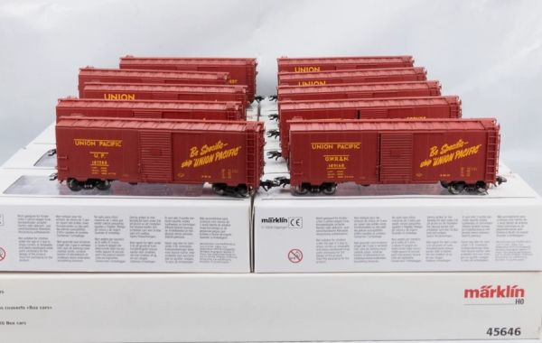 Box Car B-50-24/B-50-27 der Union Pacific Railroad (U.P.), Kunststoff-Gehäuse, Packung mit 10 Einzelpackungen, 10 Wagen mit unterschiedlichen Betriebsnr. 187085, 187500 187911, 188001, 190699, 190232, 190033, 188300, 189168, 189777