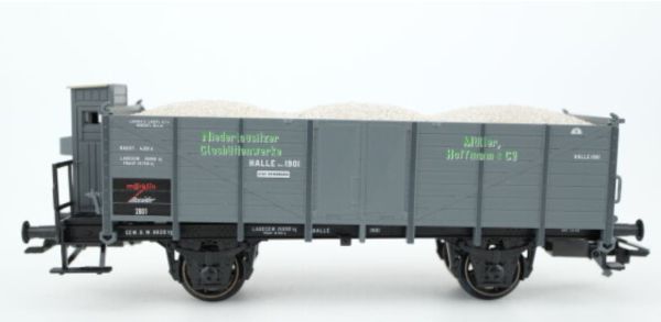 Offener Güterwagen mit Bremserhaus, Kunststoff-Gehäuse, beladen mit Quarzsand, Aufschrift Insider 2001, Niederlausitzer Glashüttenwerke, Nr. 1901