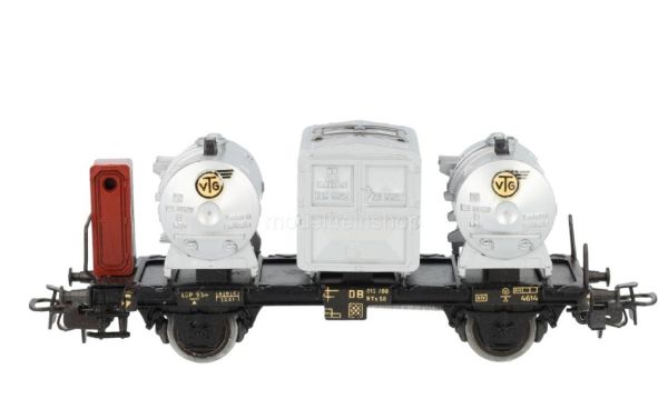 Behältertragwagen der DB, beladen mit 2 VTG Kesselbehälter und 1 Kastenbehälter