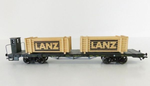 Rungenwagen mit Bremserhaus der K.Bay.Sts.B., Aufschrift Wagennr. 78918. Beladen mit 2 Holzkisten LANZ
