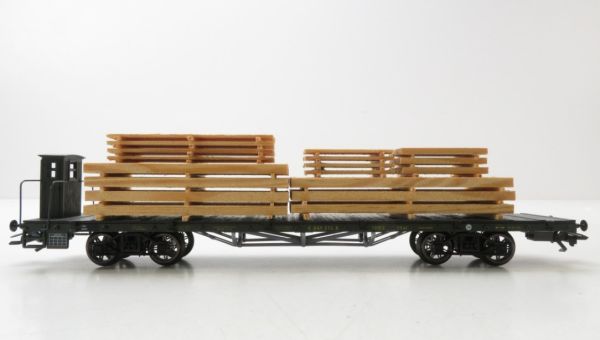 Flachwagen mit Bremserhaus der Königlich Bayerische Staatsbahn, mit Holzladung.