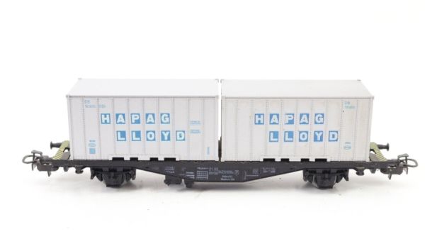 Containerwagen Typ Berlin der DB, Kunststoff-Gehäuse, Aufschrift HAPAG LLOYD, Wagen Nr. 21 80 042 0 606-4