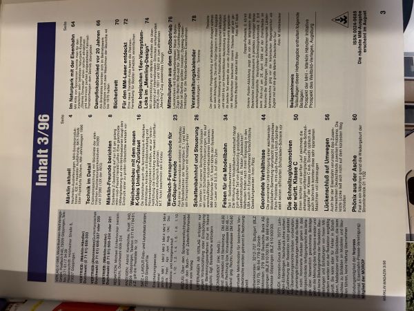 Weitere verfügbare (noch nicht geprüfte/bewertete Artikel) Modellbahnartikel findest Du hier. Es sind noch viele Kataloge/Magazine nicht fotografiert. Bitte bei Interesse die dort beschriebene Anfrage schicken. Schnelle Prüfung und Rückmeldung erfolgt.