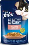 FELIX® So gut wie es aussieht® ist eine Auswahl unwiderstehlicher Mahlzeiten, die so lecker aussehen, riechen und schmecken, als hättest du sie selbst zubereitet. Jede Sorte, hergestellt mit hochwertigen Zutaten, besteht aus zarten Stücken in Gelee für eine leckere Mahlzeit, die deine Katze lieben wird! FELIX® So gut wie es aussieht® ist in einer großen Auswahl leckerer Sorten in saftigem Gelee erhältlich, um deiner Katze jeden Tag die Abwechslung zu geben, die sie liebt. Sie schmecken wirklich so gut, wie sie aussehen! FELIX - einfach unwiderstehlich!