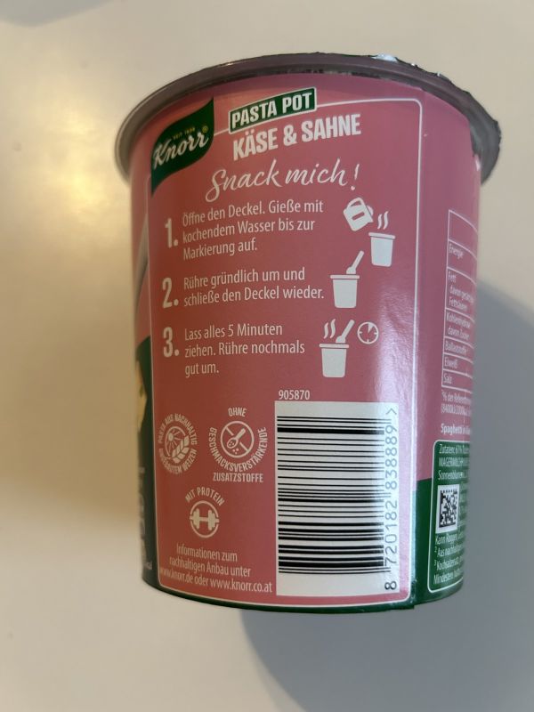 Knorr Pasta Snack – ohne geschmacksverstärkende Zusatzstoffe