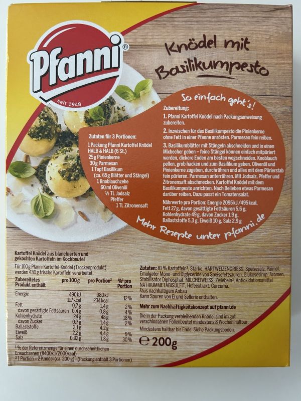 Pfanni Kartoffel Knödel halb und halb 6 Stück im Beutel 200g