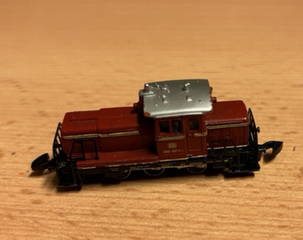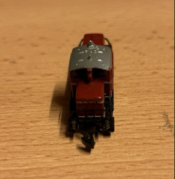 Hinweis: Bei der Lok regt sich nichts mehr. Es gab bei der Prüfung/Testfahrt eine kurze kleine Rauch Verpuffung und dann stand die Lok. Die Elektronik-Reparatur ist zu aufwändig. Daher als Ersatzteillager/Deko
