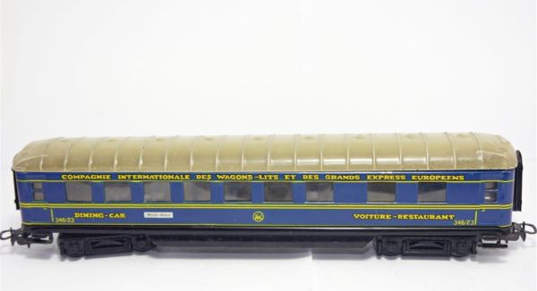 Schürzenwagen, Blech-Gehäuse, Cellonscheiben, Aufschrift 346/2J DINING-CAR