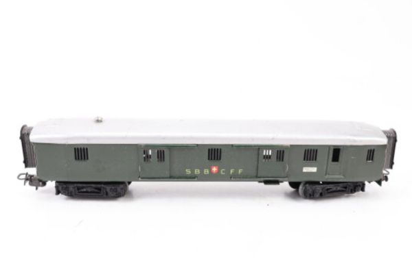 Gepäckwagen der SBB, Blech-Gehäuse, 4 Schiebetüren zum Öffnen, Aufschrift SBB CFF 348/4, Schweizer Wappen