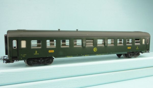 Y der SNCF, Blech-Gehäuse, 2.Klasse, Dach mit 2 Lüftern, Zuglaufschild Aufschrift Paris - Zell am See
