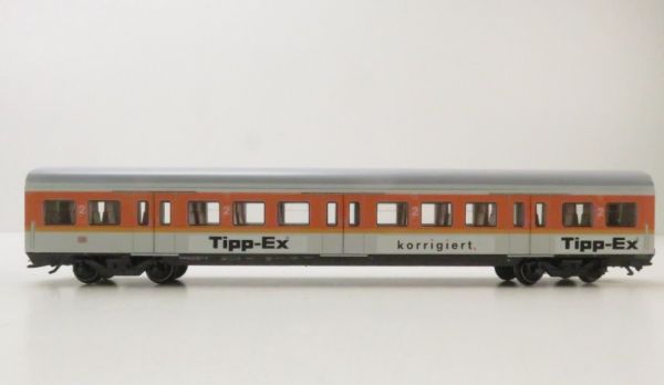 S-Bahn Wagen der DB, 2. Klasse, Kunststoff-Gehäuse, Werbeaufschrift Tipp-Ex korrigiert.