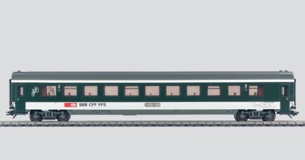 Inlandswagen Btm der Schweizerischen Bundesbahnen (SBB-CFF-FFS), 2. Klasse mit Fahrradplatz. Früherer Euro-City- Wagen im Design der Einheitswagen IV.