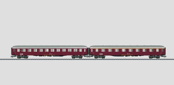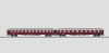 Inhalt: 1 Personenwagen litra A, 1. Klasse und 1 Personenwagen litra B, 2. Klasse der Dänischen Staatsbahnen (DSB). Rote Grundfarbgebung. Ausführung um 1990.