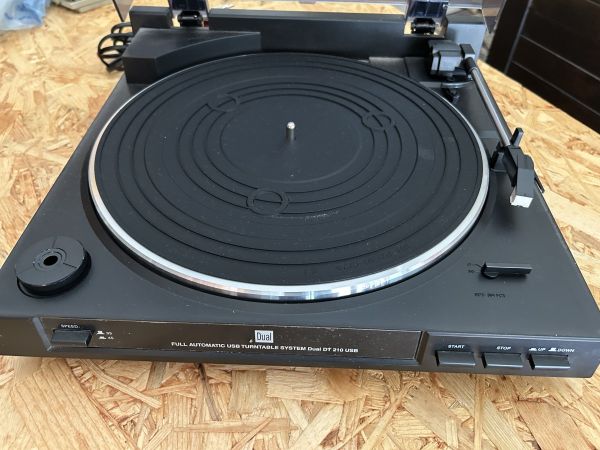 Vollautomatischer Schallplattenspieler mit USB-Funktion! Genießen Sie Ihre alteSchallplattensammlung in höchster Qualität und erfreuen Sie sich an Ihren Erinnerungen. Der DualDT 210 USB spielt nicht nur Ihre neuen und alten Schallplatten in gewohnter Qualität ab, sondernbietet Ihnen auch noch weitere Funktionen, wie z.B. die USB-Funktion zum Digitalisieren Ihreralten Schallplatten. Die Digitalisierung kann bequem über den USB-Anschluss Ihres PCs mittels derim Lieferumfang enthaltenen Software (Audacity) erfolgen. Zudem bietet der Schallplattenspielervollautomatische Bedienfunktionen wie das automatische Aufsetzen des Tonarms oder dieAutostop-Funktion am Plattenende. Durch den eingebauten umschaltbaren Phono-Vorverstärkerkann das Gerät direkt an jeden Audio-Eingang angeschlossen werden - ein spezieller 'PhonoEingang' ist so nicht mehr notwendig. Um den Schallplattenspieler an einen externen Verstärkeranschließen zu können ist bereits ein Line-Out Kabel vorhanden.Eigenschaften:-DC-Servo Gleichstrommotor: Drehzahl in U/min: 33/45-Vollautomatik mit automatischem Aufsetzen des Tonarms sowie Autostop-Funktion am Endeder Schallplatte mit automatischer Tonarm-Rückführung-Tonarm mit voreingestellter Auflagekraft-Gedämpfter Tonarmlift-Magnet-Tonabnehmer-System AT 3600-USB-Anschluss zum Digitalisieren von Schallplatten (Audacity-Software inklusive)-Eingebauter Entzerrer-Vorverstärker-Anschluss an Phono-Eingang oder AUX-In