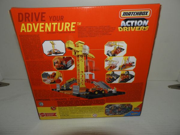 Steuere den König der Baustelle durch eine aufregende Spielwelt. Der Matchbox-Bulldozer verrichtet mit seinem starken Schaufelarm echte Schwerstarbeit. Hoch über ihm versucht der Kranfahrer mit viel Geschick das Brückenelement millimetergenau abzusetzen. Zwei weitere Arbeiter sichern die Baustelle ab, damit niemand versehentlich in den Gefahrenbereich gelangt
